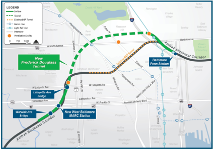 That project is the Frederick Douglass Tunnel Program, a $6-billion effort to replace and modernize the 151-year-old Baltimore and Potomac Tunnel that runs underneath part of the western half of the city — and the largest single project in Amtrak’s infrastructure portfolio right now.