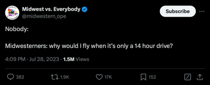 The inconvenient truth is, many of the people I grew up with don’t seem to mind the fact that their communities have vanishingly few transit options, bike lanes, or even sidewalks, even if they grumble about the price of gas and insurance and often vote for politicians who they believe will drive those costs down. They do not feel like they are forced to depend on cars, even if they would undoubtedly struggle to get to work, or the grocery store, or simply to leave their homes without one. They just love the experience of driving — if not always their cars themselves, which tend towards the kind of used SUVs that can handle lake-effect snow — and have chosen a daily lifestyle that requires them to do it constantly, even when other options were available to them.
